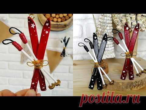 ИДЕЯ из палочек от мороженого / Миниатюра ЛЫЖИ / Ёлочные игрушки своими руками
