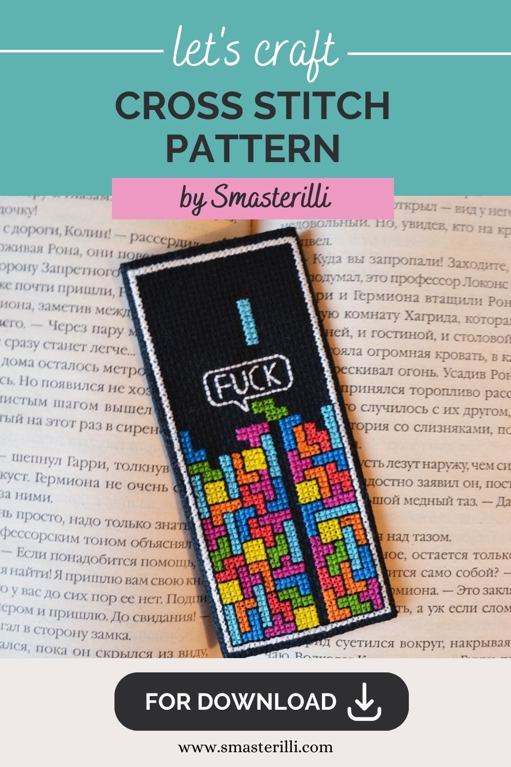 Tetris blocks bookmark cross stitch pattern PDF by Smasterilli. Digital cross stitch pattern for instant download. easy cross stitch for beginners. Book Lover's Craft