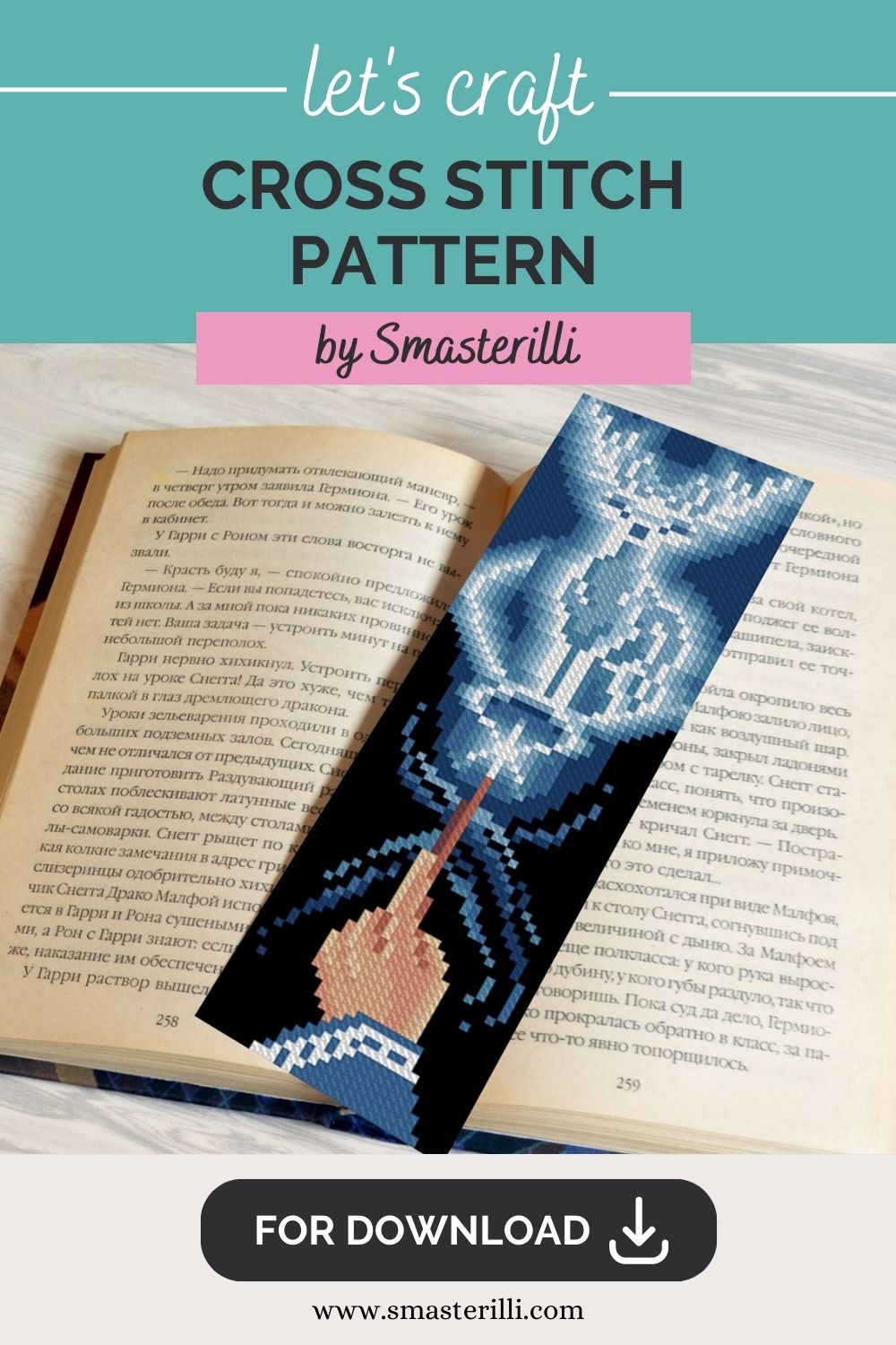 Magic deer patronus bookmark cross stitch pattern PDF by Smasterilli. Digital cross stitch pattern for instant download. easy cross stitch for beginners. Book Lover's Craft