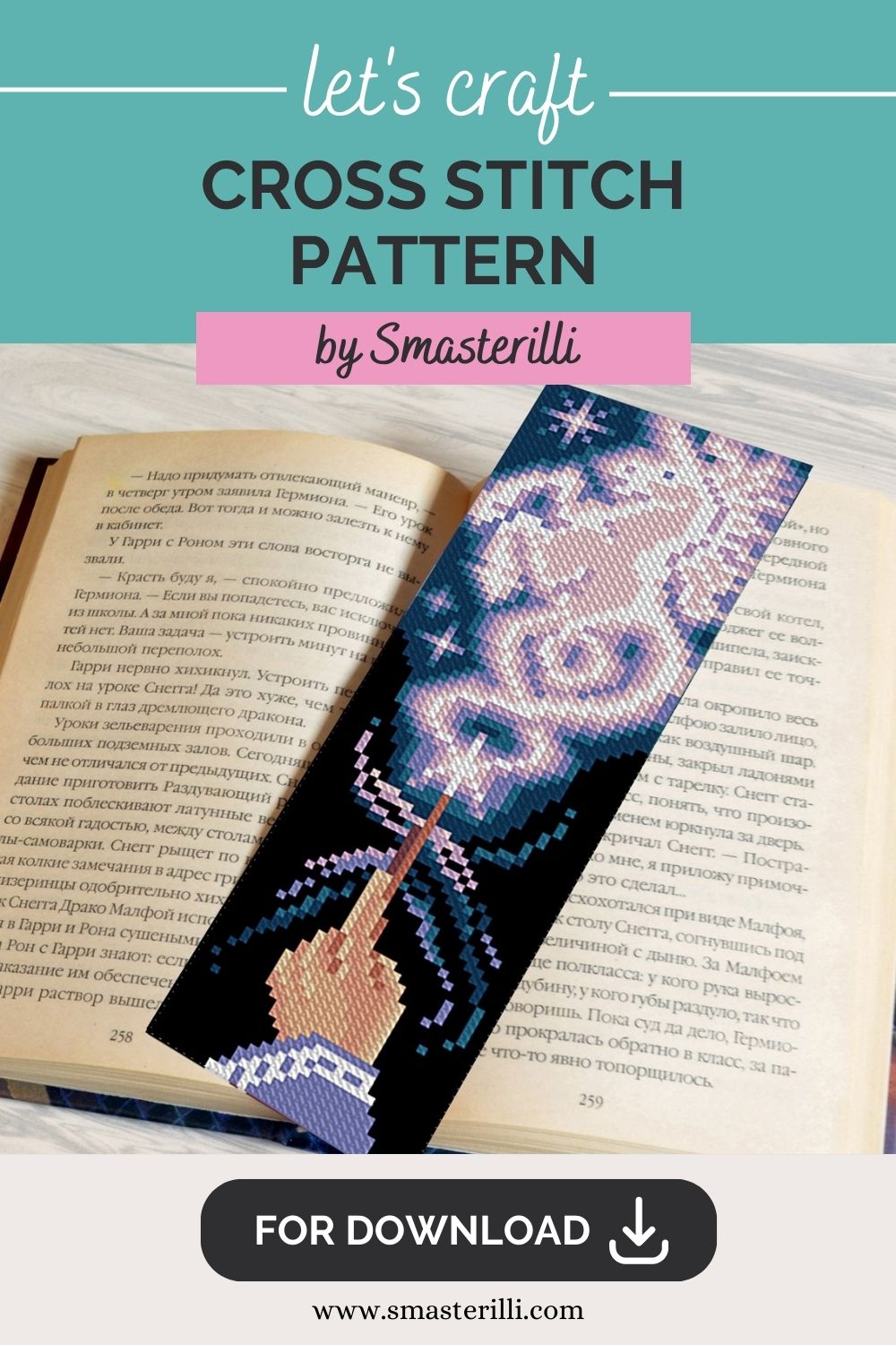 Magic unicorn patronus bookmark cross stitch pattern PDF by Smasterilli. Digital cross stitch pattern for instant download. easy cross stitch for beginners. Book Lover's Craft