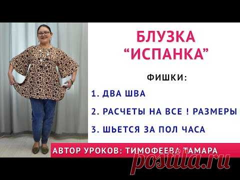 блузка "ИСПАНКА". Всего два шва. Шьётся за полчаса. Уроки кройки и шитья. Тимофеева Тамара