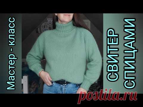 МАСТЕР-КЛАСС Свитер спицами. Подробно вяжем свитер регланом сверху, вяжем РОСТОК, петли подреза
