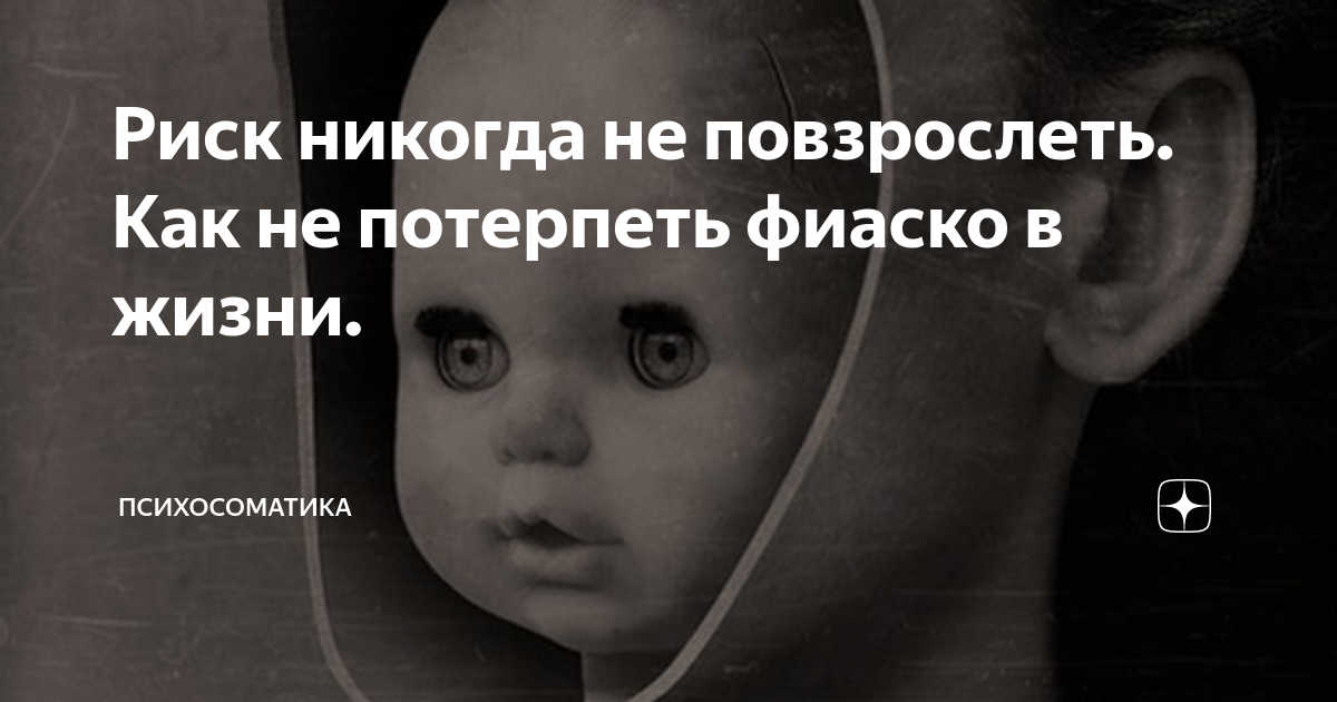 Риск никогда не повзрослеть. Как не потерпеть фиаско в жизни. Статья автора «ПСИХОСОМАТИКА» в Дзене ✍: Автор: Екатерина Тур, врач, психосоматолог Незрелые люди стараются овладеть окружающими, сделать их своим продолжением. Происходит это неосознанно.