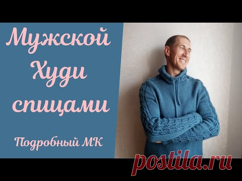 Мужской Худи спицами 1-я часть! Подробный МАСТЕР КЛАСС!