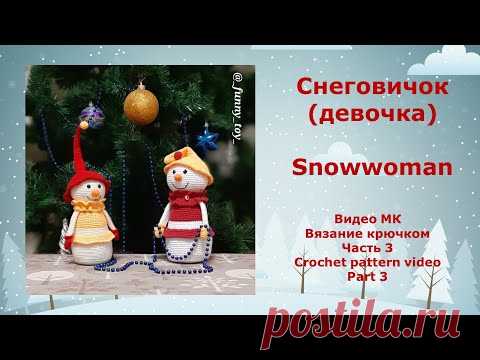 Снеговичок (девочка) Часть 3 Вязание крючком Snowwoman Part 3 Crochet pattern video