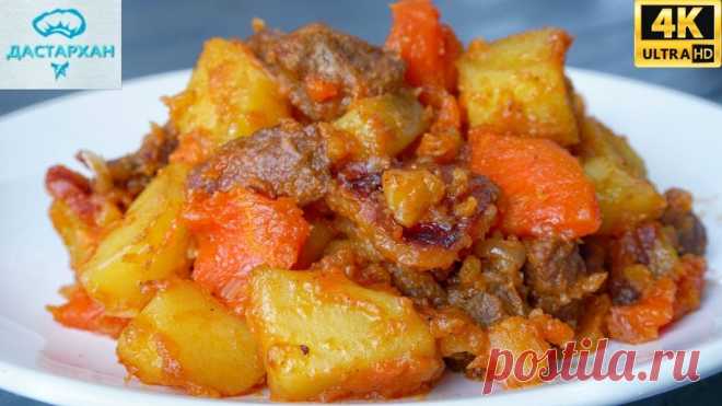 Сколько ни пробовала, НО ЭТОТ ВАРИАНТ САМЫЙ ВКУСНЫЙ ☆ ЖАРКОЕ ПО-ДОМАШНЕМУ ☆ Дастархан Мясо – 400 гр.Картофель – 1,5 кг.Лук – 150 гр.Морковь – 300 гр.Томат паста – 2 ст.л.Масло растительное – 70 мл.Соль – 2 ст.л.Перец черный – 1 ч.л.Возьмите вок-сковороду, налейте туда масло и хорошенько раскалите его. Когда пошел легкий дымок, добавьте крупно нарезанное мясо. Обжарьте...