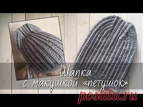 Шапка-бини с макушкой «петушок» («лопатка»). Модная шапка спицами с красивой макушкой. Мастер-класс.
