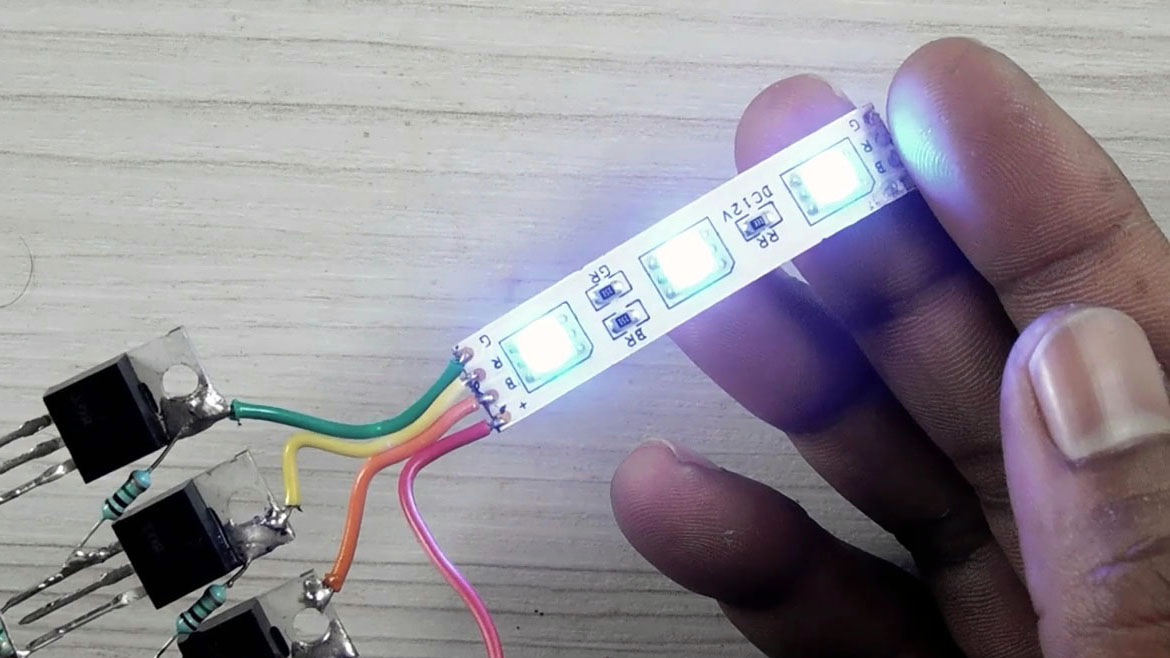 Самый простой контроллер для RGB-ленты на трех транзисторах Для создания эффекта поочередного изменения RGB светодиодов ленты предлагается собрать несложную электронную схему управления. Напряжение с каждого из трех выходов автоколебательного кольцевого мультивибратора поочередно поступает на вход R, G или B полосы светодиодов. В определенный момент времени