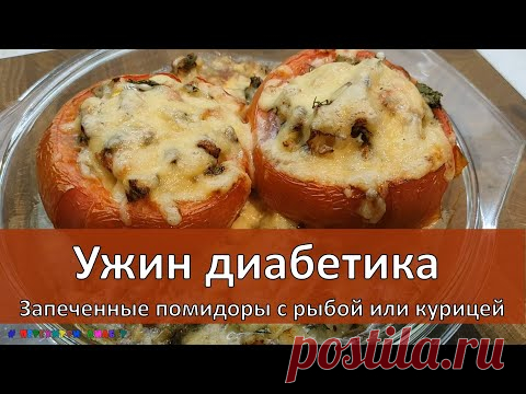 Ужин диабетика. Запеченные помидоры с рыбой или курицей