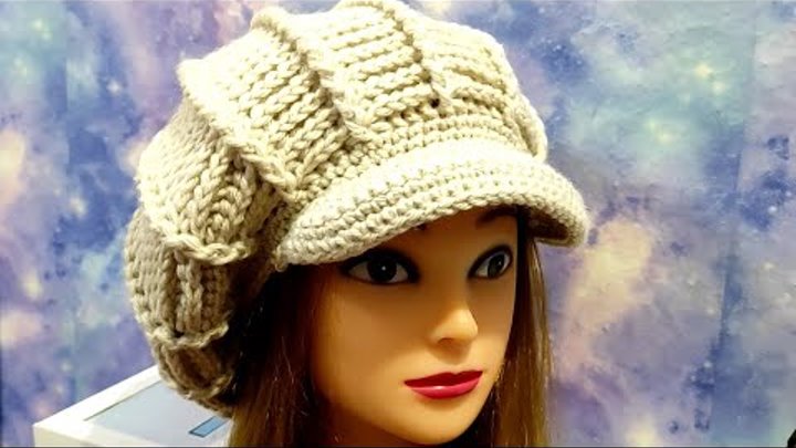 ЗИМНИЙ БЕРЕТ-КЕПКА крючком. Зимняя кепка для начинающих.