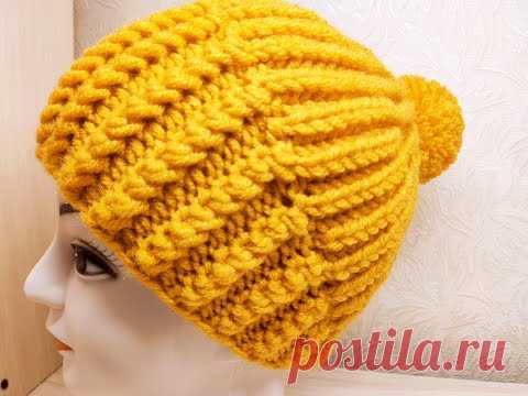 ШАПКА ЖЕНСКАЯ СПИЦАМИ ОБЪЕМНАЯ,ТЕПЛАЯ, КРАСИВАЯ, БЕЗ ОТВОРОТА.