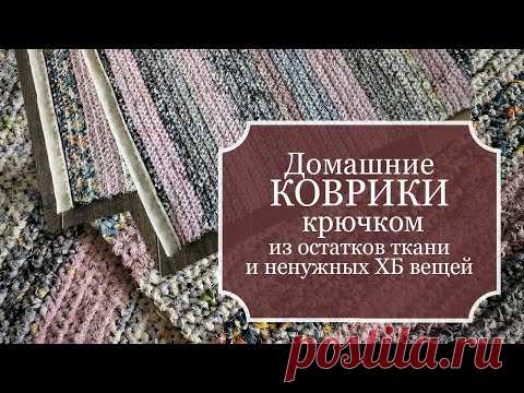 ДОМАШНИЕ КОВРИКИ, связанные крючком из остатков ткани и ненужных ХБ вещей - БЕЗОТХОДНОЕ рукоделие!