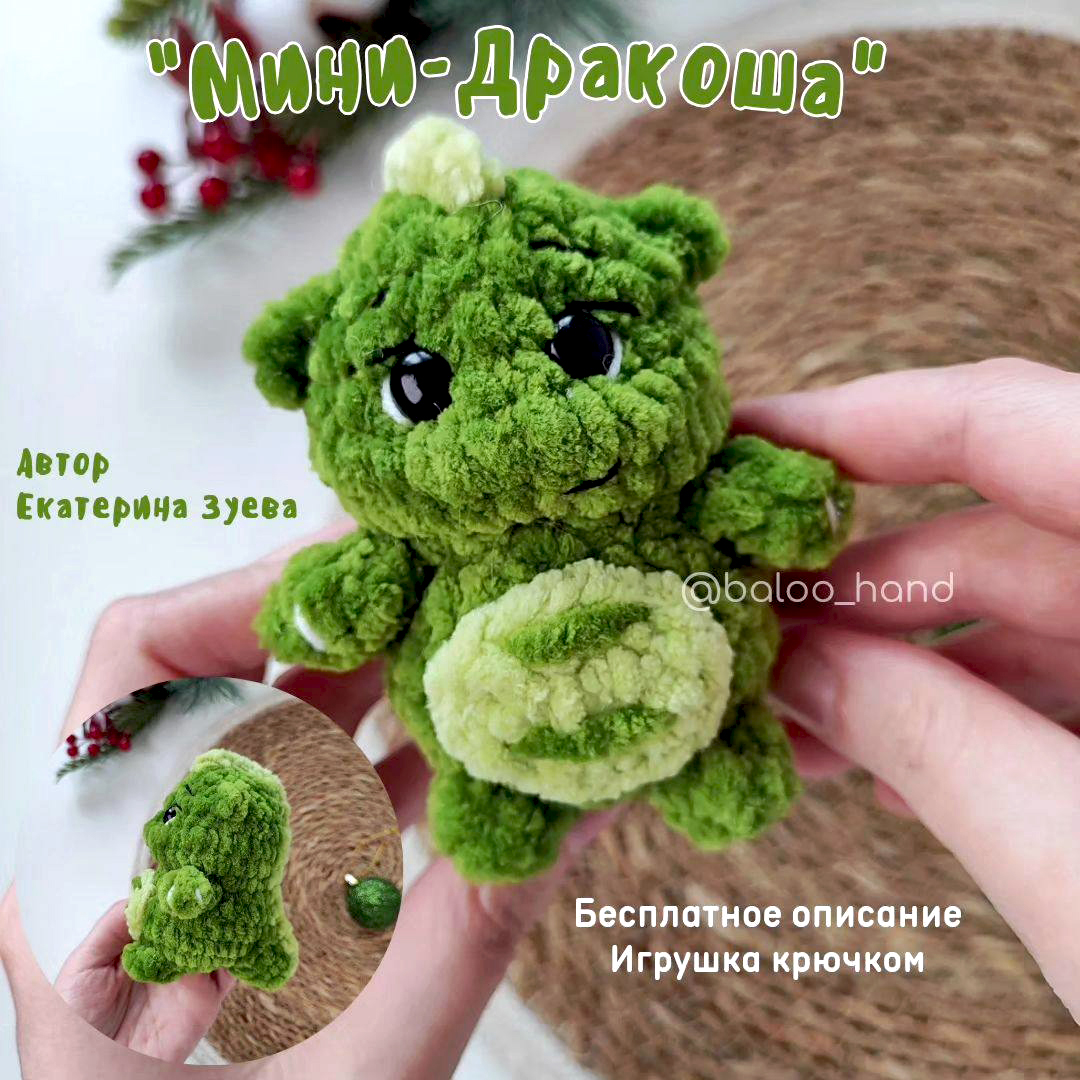 PDF Мини Дракоша крючком. FREE crochet pattern; Аmigurumi toy patterns. Амигуруми схемы и описания на русском. Вязаные игрушки и поделки своими руками #amimore - плюшевый дракон, маленький дракончик из плюшевой пряжи, динозавр, динозаврик.
