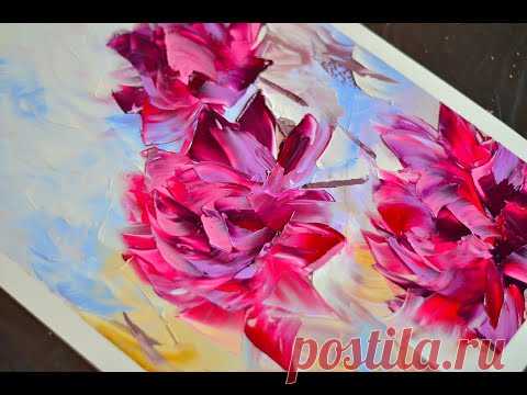 Красивая современная цветочная живопись шпателем