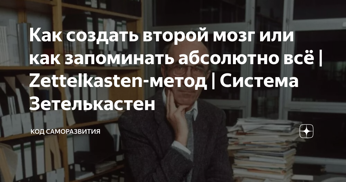 Как создать второй мозг или как запоминать абсолютно всё | Zettelkasten-метод | Система Зетелькастен Статья автора «Код Саморазвития» в Дзене ✍: Что такое второй мозг Представьте, что у вас есть второй мозг, в котором сохраняются только важные мысли.