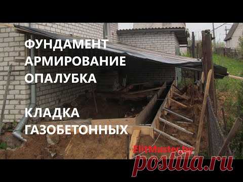 Фундамент с установкой опалубки и армирование. Возведение и армирование стен из газобетонных блоков.