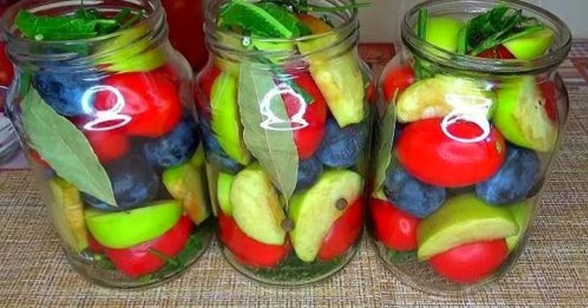 Маринованное ассорти из слив, томатов и яблок - Будет вкусно