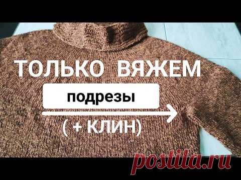 Подрезы при вязании сверху-вниз по кругу. Вяжем клин в начале рукава. (детали изделия)