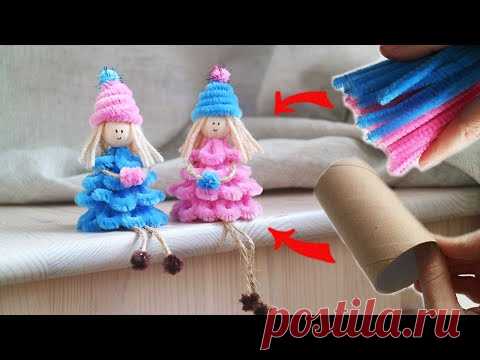 😍Куколка своими руками 😍Очень просто ✅ из втулки и синельной проволоки