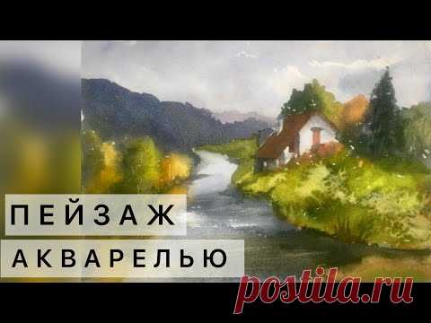 Как НАРИСОВАТЬ ДОМИК на берегу озера. #акварельнаяживопись #акварельныйскетч