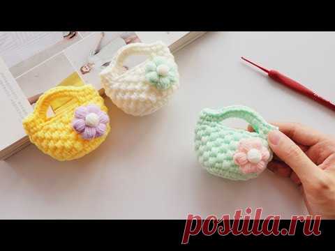 错位短针应用,钩针迷你手提包,挂在大包上应该很有趣