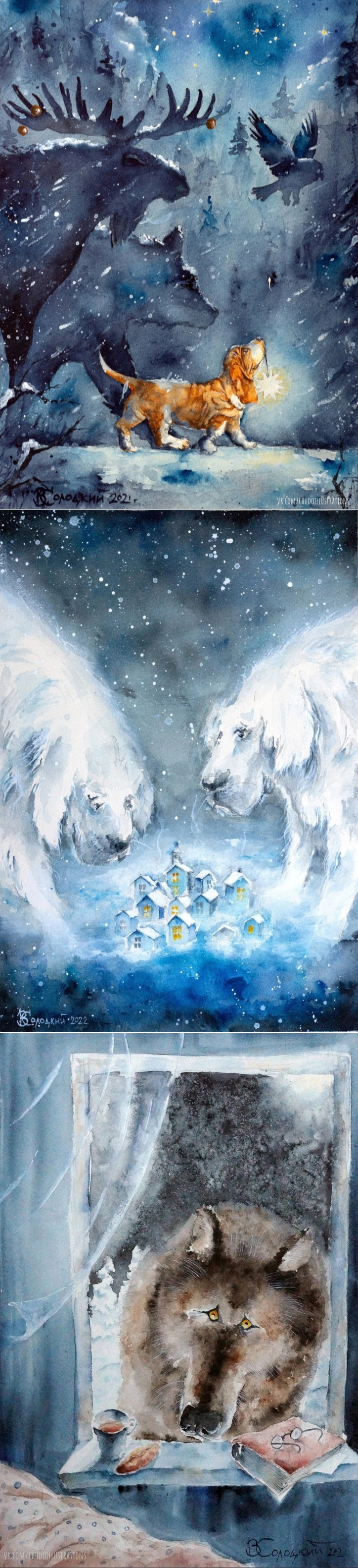 Зимней сказки волшебство! Мохнатые акварели от русского художника Вадима Солодкого из Саратова.