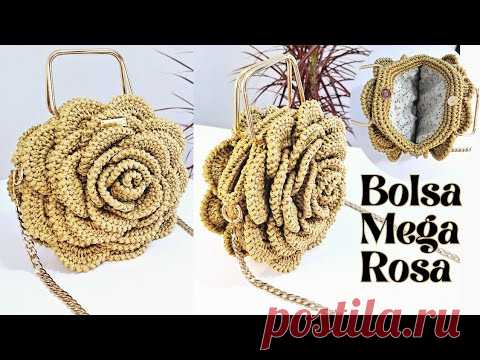 СУМКА «МЕГА ЦВЕТОК», ВЯЗАННАЯ КРЮЧКОМ, НА ПОДКЛАДКЕ И КЛАПАНКЕ