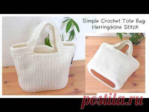 Простая большая сумка крючком с узором "елочка"