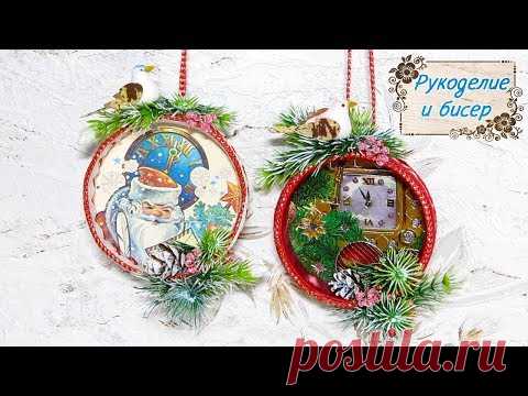 Мастер-Класс. Ёлочная игрушка из пластиковой крышки или бобины от скотча "Новогодние Часы"