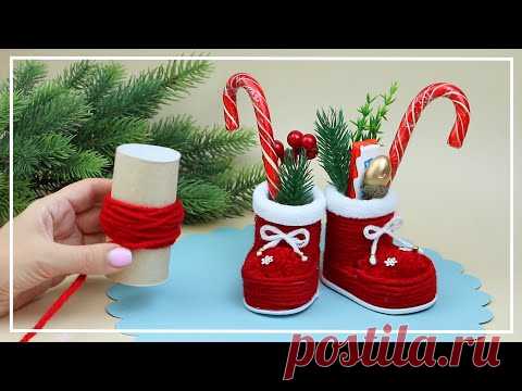 Новогодний декор, поделка или подарок?🎅 Делаем нарядный сапожок из втулки и пряжи 🎄