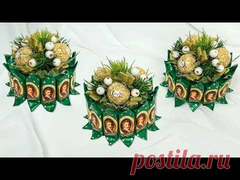 Мини презент на Новый Год. Торт из конфет своими руками. Подарки и поделки. Сладкий подарок