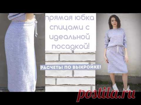 Юбка спицами! идеальная посадка! прямая ниже колена юбка, как связать? вязанный костюм!