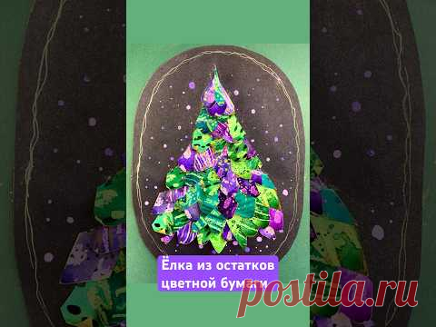 Ёлка из остатков цветной бумаги. #рисование #коллаж #новогоднийадвент #урокирисования
