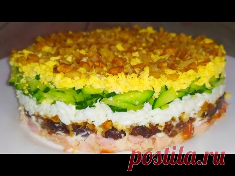 Слоеный САЛАТ с КОПЧЕНОЙ КУРИЦЕЙ и черносливом! ВКУСНО и СЫТНО!