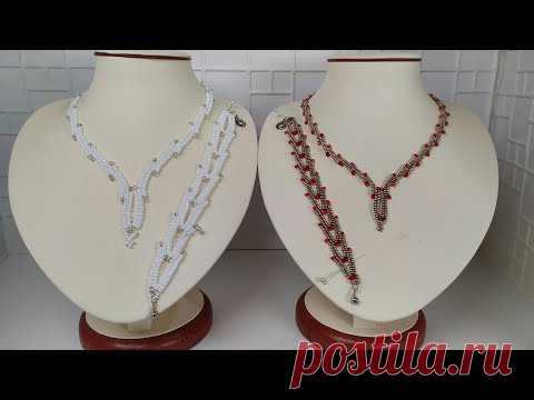 Украшения из бисера. 2 часть. Комплект. Ожерелье, браслет. Мастер класс. Для начинающих.