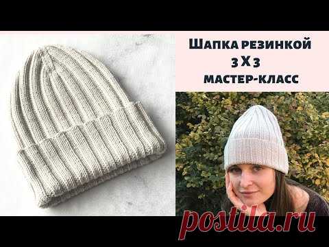 Шапка резинкой 3 Х 3 с отворотом и модной макушкой ! Подробный мастер класс.