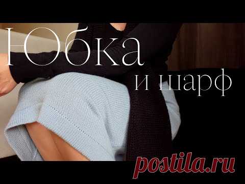 Вязаная классическая ЮБКА-карандаш из мериноса с ангорой/ Осенний образ 2022/ Черный ШАРФ с бахромой