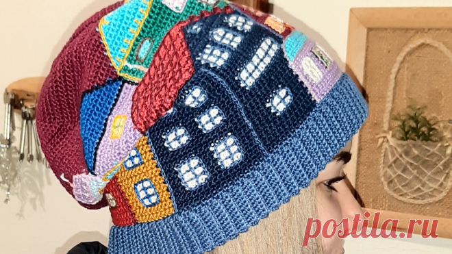 Вязание крючком. Техника интарсия. Домики Карлы Жерар. МК, часть 1. Мои дорогие подписчики!Добавляю описание работы по петлям со сменой цвета.Для сокращения описания вместо сбн-столбик без накида буду писать-п.-петля.1-4 р.-1...