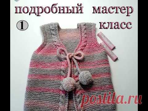 ПОДРОБНЫЙ МК 1 ДЕТСКИЙ ЖИЛЕТ СПИЦАМИ С ПОМПОНАМИ DETAILED MC 1