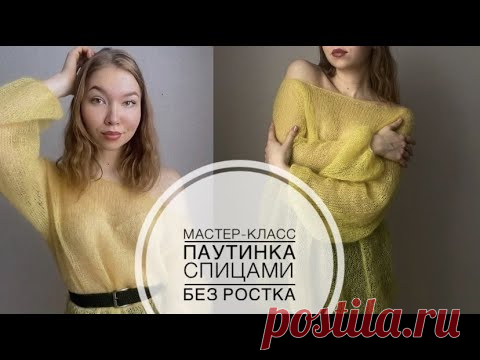 Паутинка спицами / Мастер-класс свитер спицами без ростка / МК вязаный свитер-паутинка из мохера