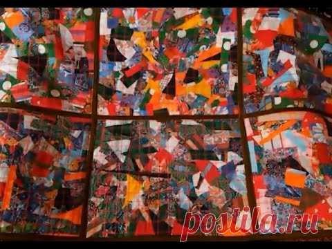 Нарядный ковер из лоскутов в технике пицца. Elegant patchwork rug in the pizza technique