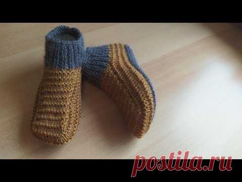 Очень интересные тапочки связанные лицевыми и изнаночными петлями