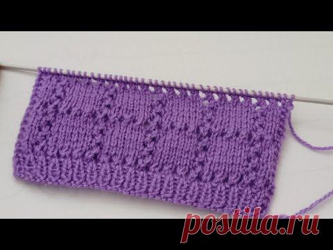 Красивый узор "Квадраты с ажурными краями" спицами.