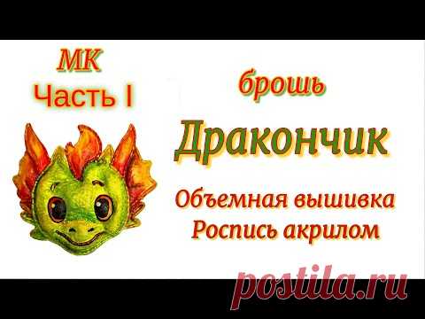 МК Брошь Дракончик. Часть I. Объемная вышивка. Роспись акрилом по коже.