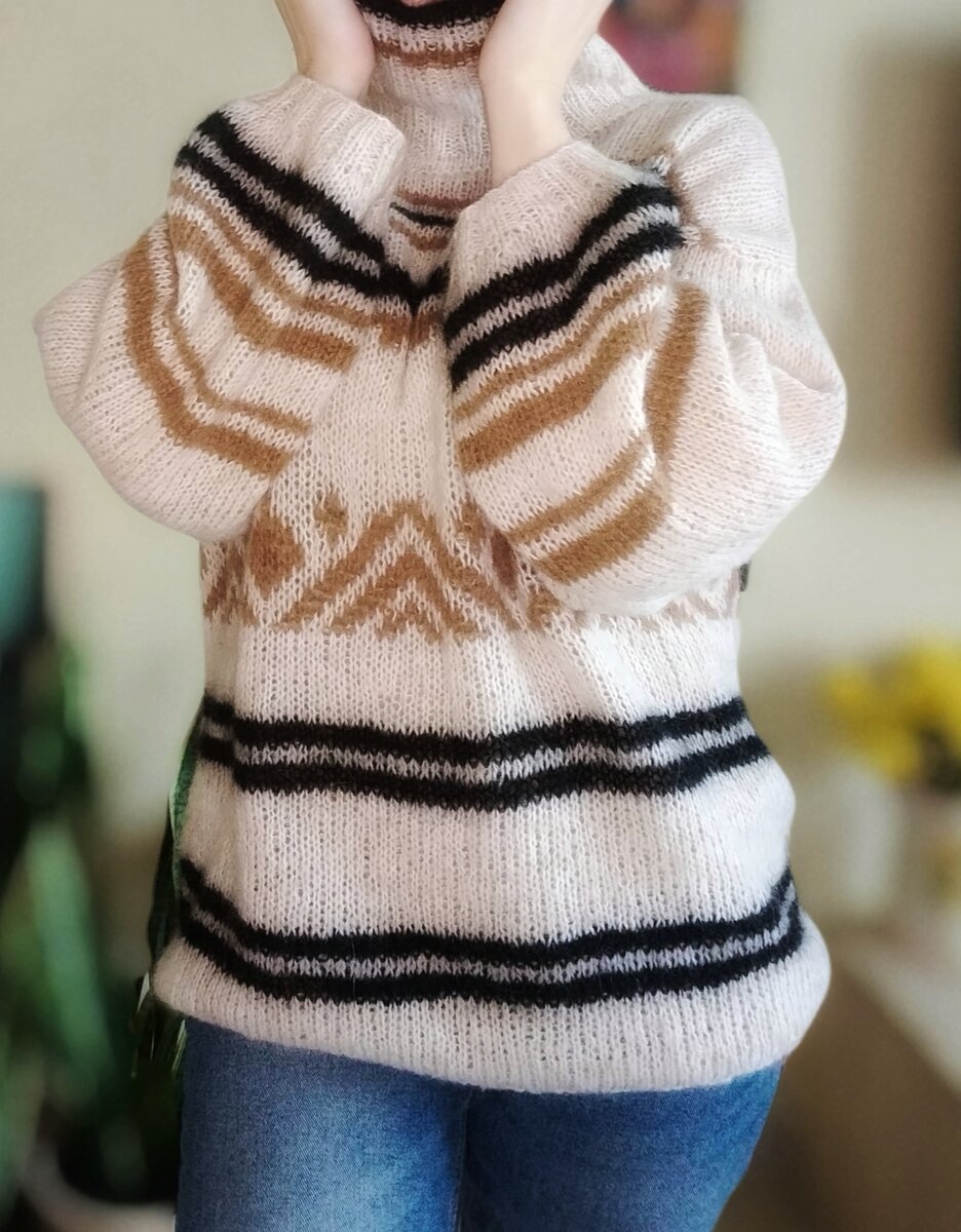 "Горный" свитер с полосками и жаккардом. Подробное описание вязания спицами | Стильное вязание KNITMILO | Дзен