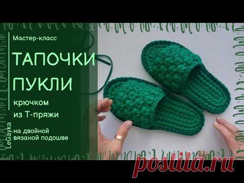 Тапочки крючком из трикотажной пряжи на двойной подошве.