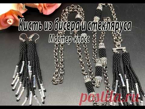 Кисть из бисера и стекляруса. Мозаичное плетение. Серьги и цепочка с кулоном - кистью. Мастер-класс.
