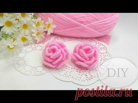 Розы из пряжи БЕЗ спиц и крючка (еще один способ). Видео МК | Макраме и вязание на вилке