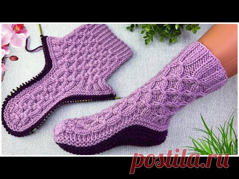ДОМАШНИЕ ОЧЕНЬ ТЕПЛЫЕ НОСКИ-СЛЕДКИ НА ДВУХ СПИЦАХ. НОСОЧКИ ЗА ОДИН ВЕЧЕР.