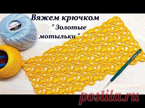 Необычный интересный узор крючком " Золотые мотыльки "